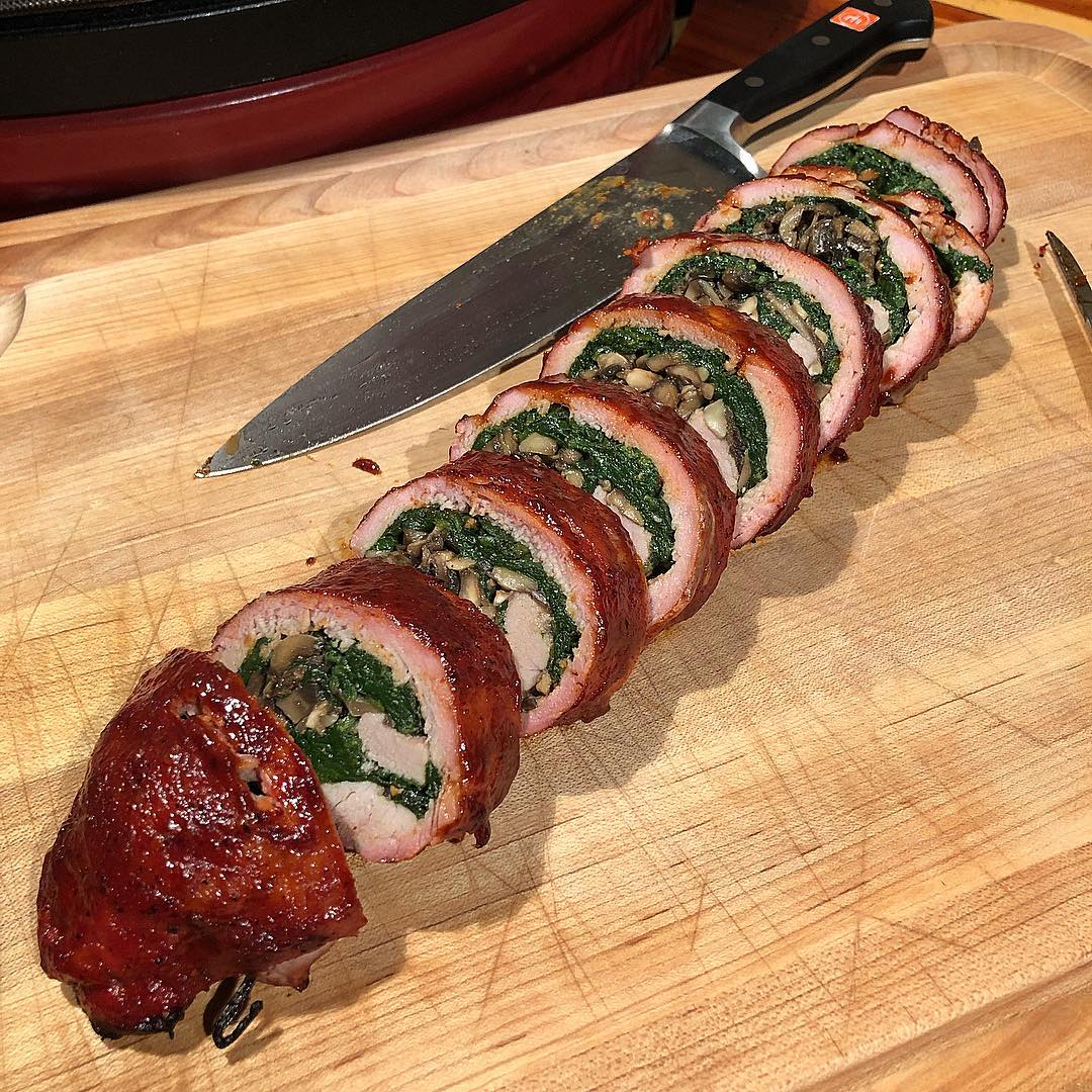 Get a double dose of piggy happiness with a wonderful bacon pork loin that will be the star of your party table. Surprisingly, it only takes 15 minutes to prepare and once baked, you just have to bake it once. You must first season the loin and then cover with a mixture of dried cherries, parsley and mustard. Wrap everything in the bacon and make sure the slices overlap and the ends are underneath. Roast the bacon with a combination of currant jelly and red wine vinegar toward the end of the cooking time. You get crispy bacon, an acidic and fruity cherry layer and tender, fluffy pork.